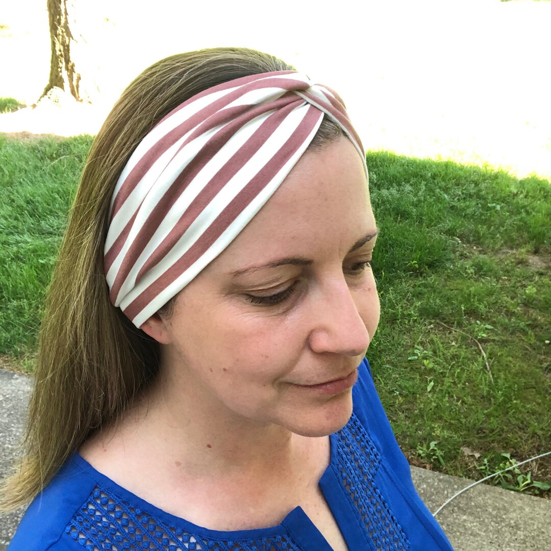 Pink Mauve Stripe Headband For Women Everyday Twist Cream Etsy